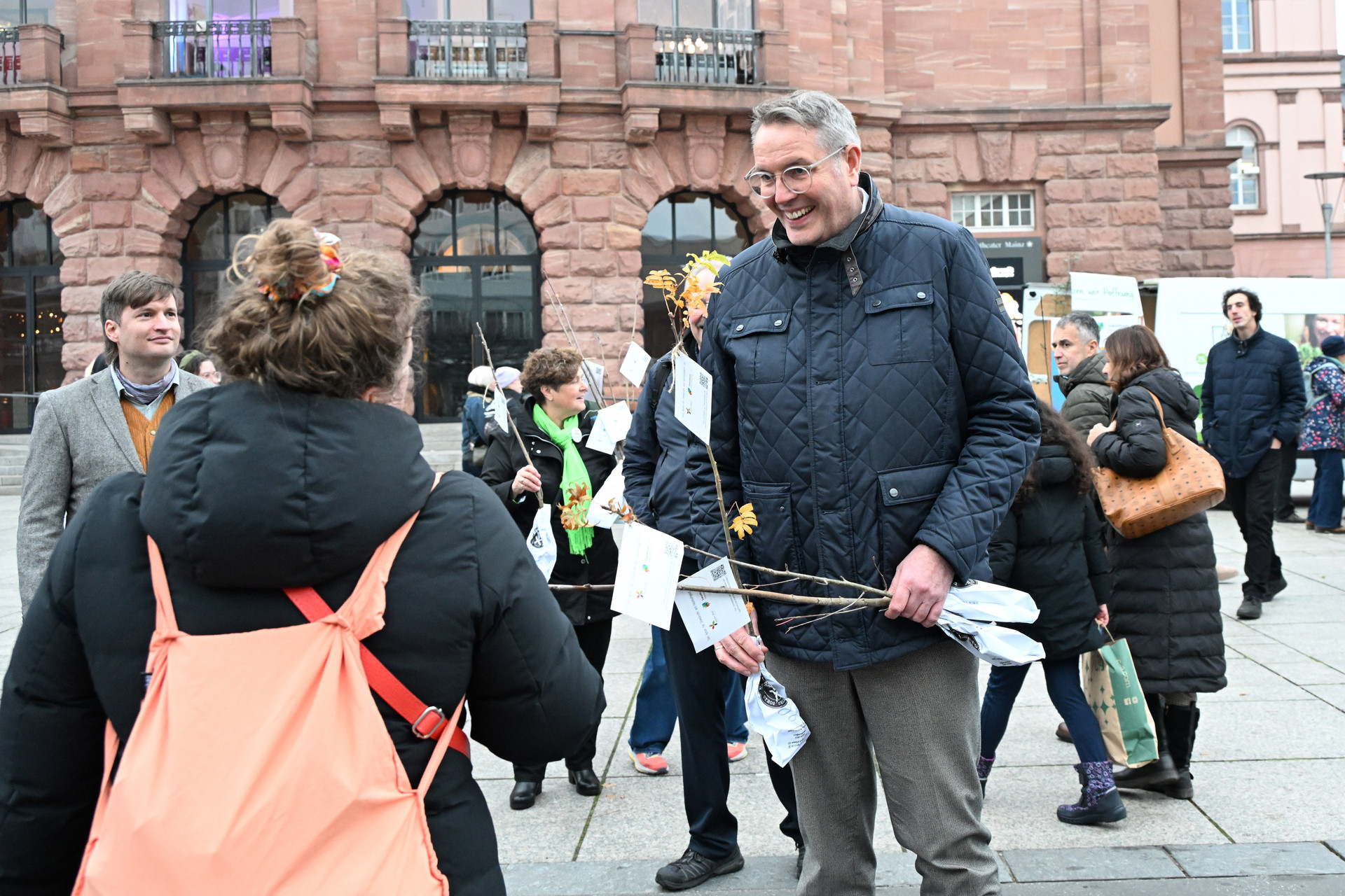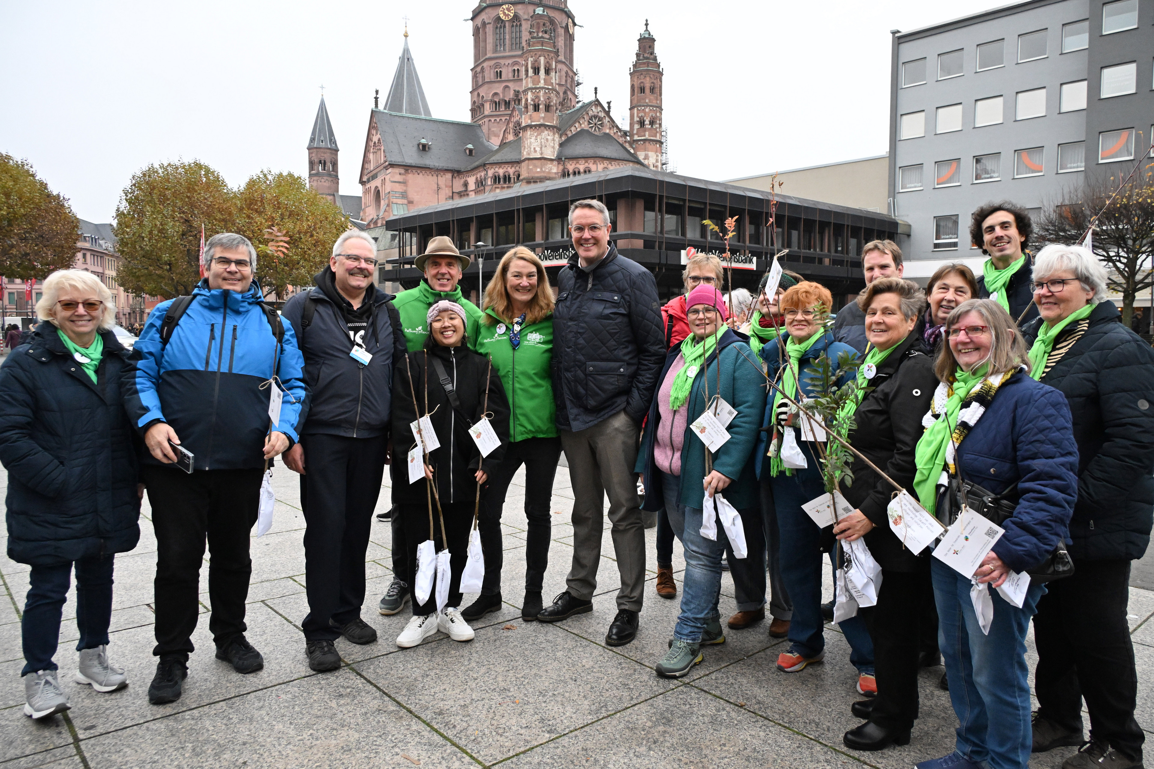 Unter dem Motto „Demokratie wächst nicht von alleine. Für eine nachhaltige Zukunft müssen wir sie pflegen und schützen“ haben Ministerpräsident Alexander Schweitzer, der Zukunftsrat Nachhaltige Entwicklung Rheinland-Pfalz und die LandFrauen „Frischer Wind“ am Samstag, den 08. November, in der Mainzer Innenstadt ein sichtbares Zeichen gesetzt. Bei der gemeinsamen Aktion wurden Baumsetzlinge an Passantinnen und Passanten verteilt – als Symbol für das Wachsen und Pflegen einer lebendigen Demokratie. Parallel wurde ein Videobeitrag veröffentlicht, in dem Vertreterinnen und Vertreter aus verschiedenen Gesellschaftsbereichen für Demokratie und Nachhaltigkeit Stellung beziehen.